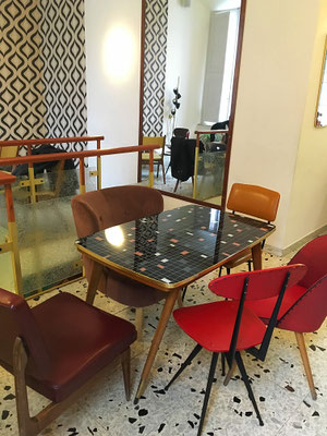 ausreichend Stühle vorhanden sind. Gegenüber ist eine "mobile" Bushaltestelle für einen der Minibusse, die in den Gassen verkehren. Und manchmal klauen sich die dort Wartenden die Stühle. Der