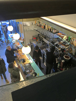 Kolonialwarenladens. Was immer man auch an der Bar trinken möchte, man bezahlt es erst an der Kasse und bestellt anschließend mit seinem Scontrino (Quittung) bei den Herren hinter dem Tresen in