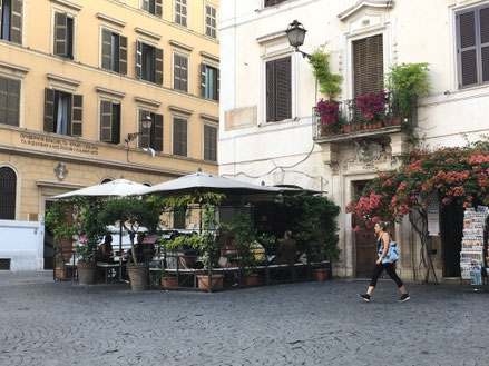 In der altehrwürdigen Via Giulia liegt die gleichnamige Bar. Sie ist klein und immer voll. Draußen stehen 3 kleine Tische, an denen man ohne Aufschlag seinen Caffè trinken kann. Wenn denn